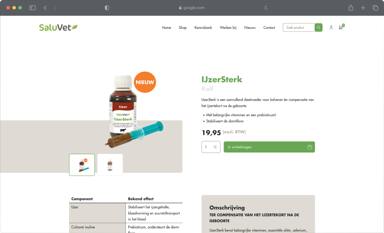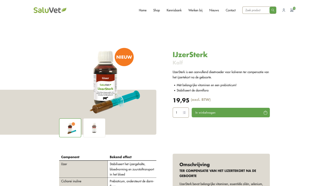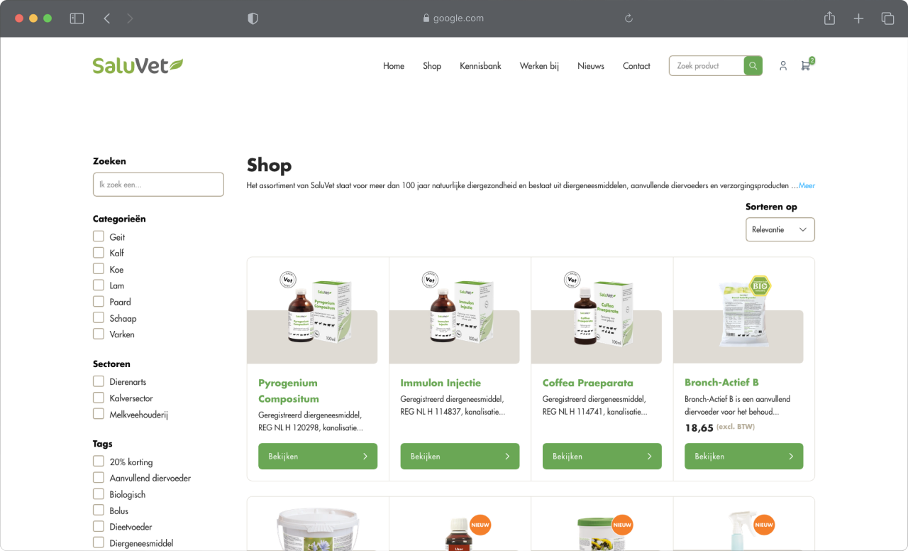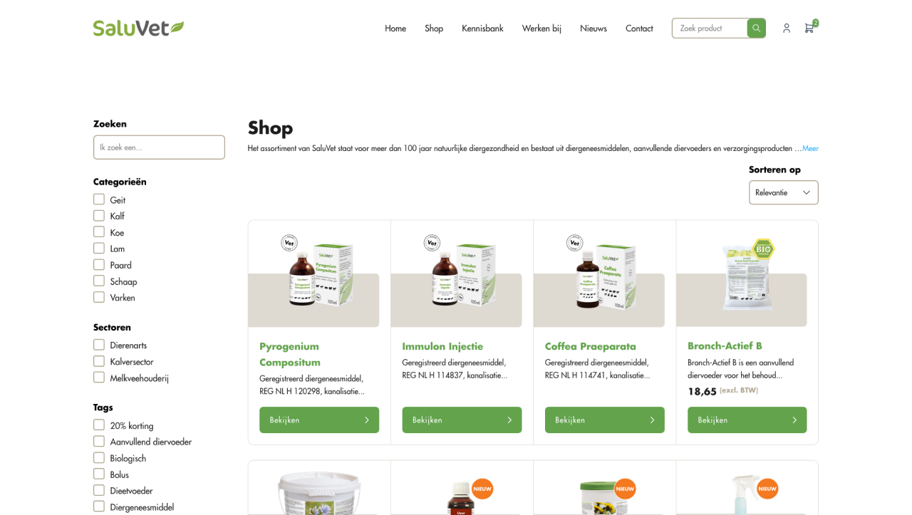 We kregen de opdracht om een nieuwe webshop te bouwen voor SaluVet, waarbij gebruik werd gemaakt van WooCommerce. Het doel was om een gebruiksvriendelijke en efficiënte online winkel te creëren die voldoet aan de specifieke eisen van SaluVet's professionele klanten. De ontwikkeling van de webshop begon met een grondige analyse van de behoeften van het bedrijf en hun klanten. Hierbij lag de focus op een intuïtief ontwerp, soepele navigatie en een robuust beheersysteem voor producten en bestellingen.