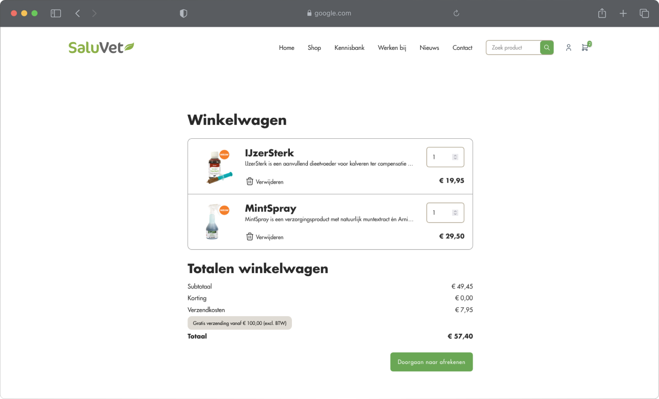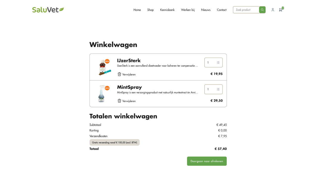 In het kort, de op maat gemaakte WooCommerce webshop voor SaluVet biedt een veilige en professionele online omgeving die volledig is afgestemd op de specifieke behoeften van dierenartsen en veebedrijven, terwijl het ook de operationele processen van SaluVet ondersteunt en optimaliseert.