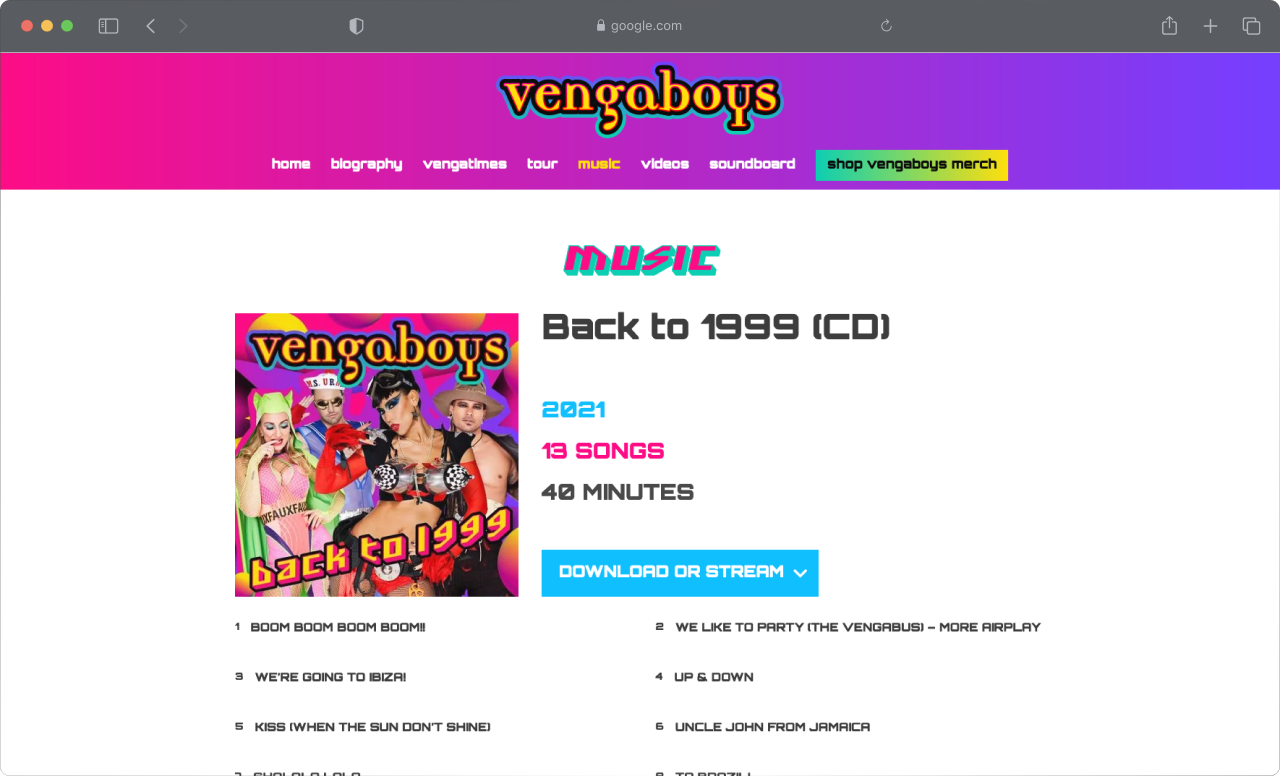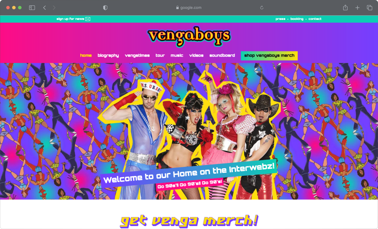 Een passende website maken voor een iconisch groep die voldoet aan de huidige standaarden is in het kort de opdracht die we kregen. Een website in een moderne stijl zou niet passend zijn voor de groep, het design is dan ook qua uitstraling vrijwel gelijk gebleven aan hun eerder gevoerde stijl. Deze stijl is doorgevoerd in de website die voldoet aan de moderne normen, zo zijn de jaren 90 terug in de moderne tijd.